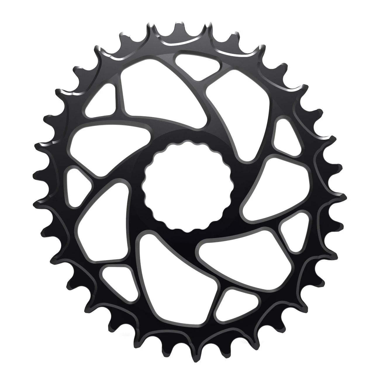 The chainrings are CNC machined from 7075 T6 aluminum and hard coat industrially anodized to provide protection from mechanical impacts, a good look, and an excellent tactile feel to each of the chainrings that lasts a long time. A unique tooth profile eliminates chain noise, reduces wear, and provides smooth operation on the entire system of all the most common combinations, such as 10, 11, and 12-speed drives. The Narrow Wide teeth guide the chain reliably.