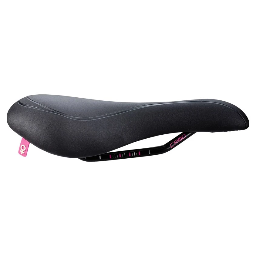 With lightweight CrMo rail with adjustment scale, Nylon shell and light foam with moderate densitiy for optimal comfort. Featuring a durable synthetic and waterproof cover.