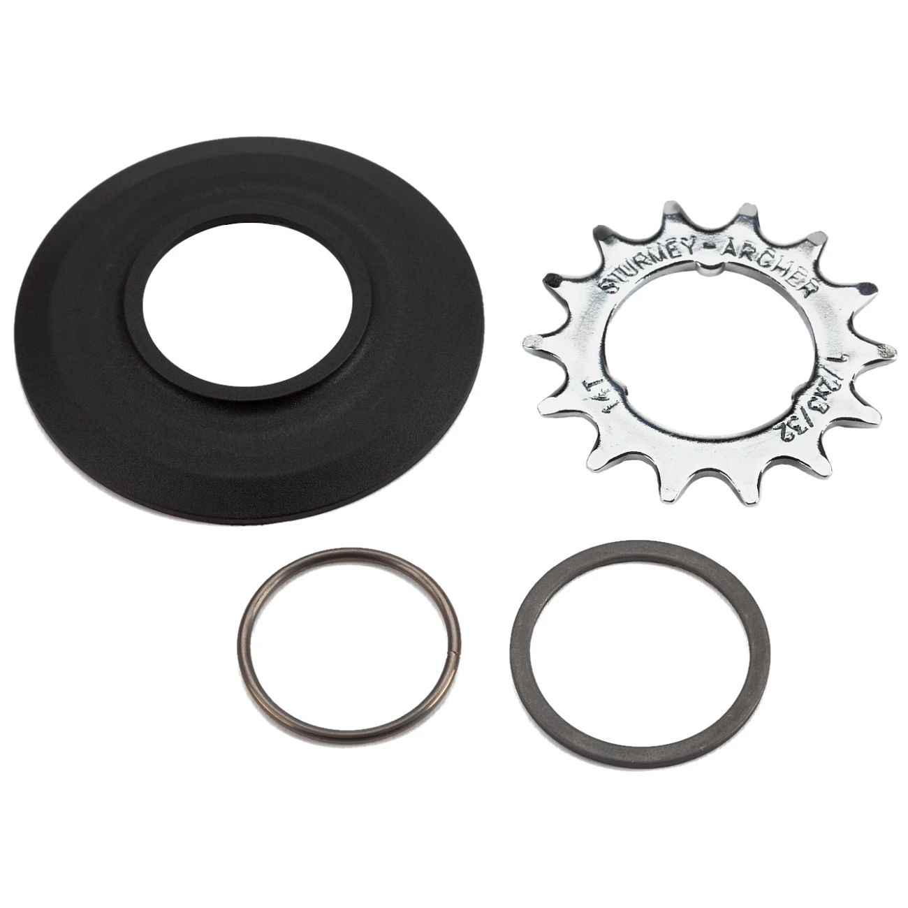 Includes sprocket, disc, ring and additional 1.5mm spacer to allow use with wide drivers on early 3-speed hubs.