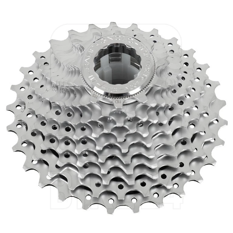 The new Campagnolo Potenza 11 cassettes are based on a design with one triplet and 8 single sprockets with aluminum spacers. Aside from the 11-32 combination the cassettes are compatible with the rest of the range. The Potenza 11 rear derailleur with medium cage is specially designed for the 11-32 cassette which signals the introduction of not only a new, lower gearing typology, but also a new range of cassettes labeled Campagnolo 11.