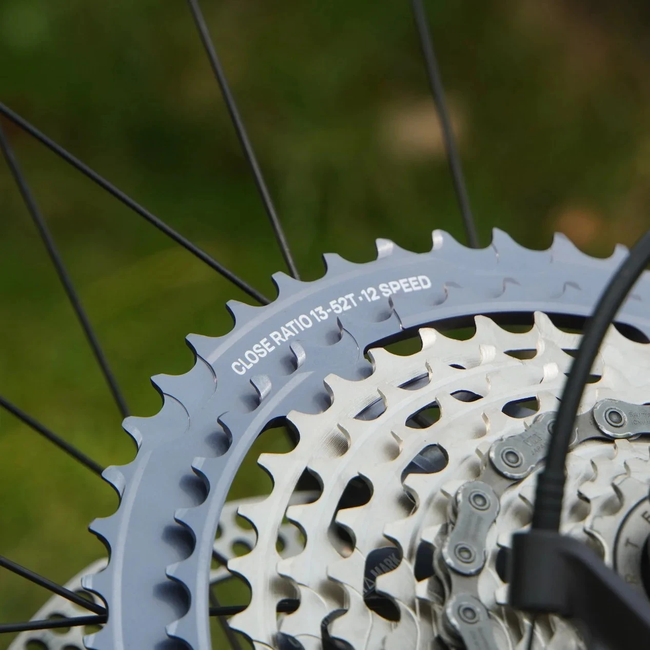 The smaller sprockets are made of steel for strength, and the large sprockets are made of high-strength aluminum for weight optimization. The result is a lightweight yet very durable cassette for SRAM and Shimano 12-speed drivetrains.
