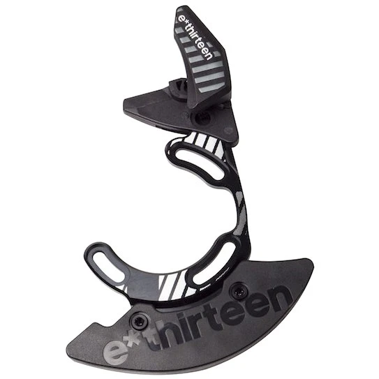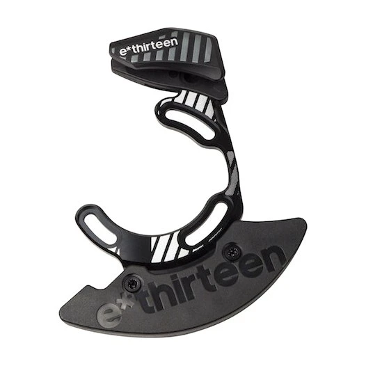 A modular assembly allows riders to choose from one of 2 sizes of bashguards (included). All polycarbonate parts are solvent resistant, so they wont get brittle or crack after exposure to lubes and cleaners. The compact, adjustable upper slider has a co-molded soft rubber interior to cut down on noise, and it opens quickly and easily without tools.