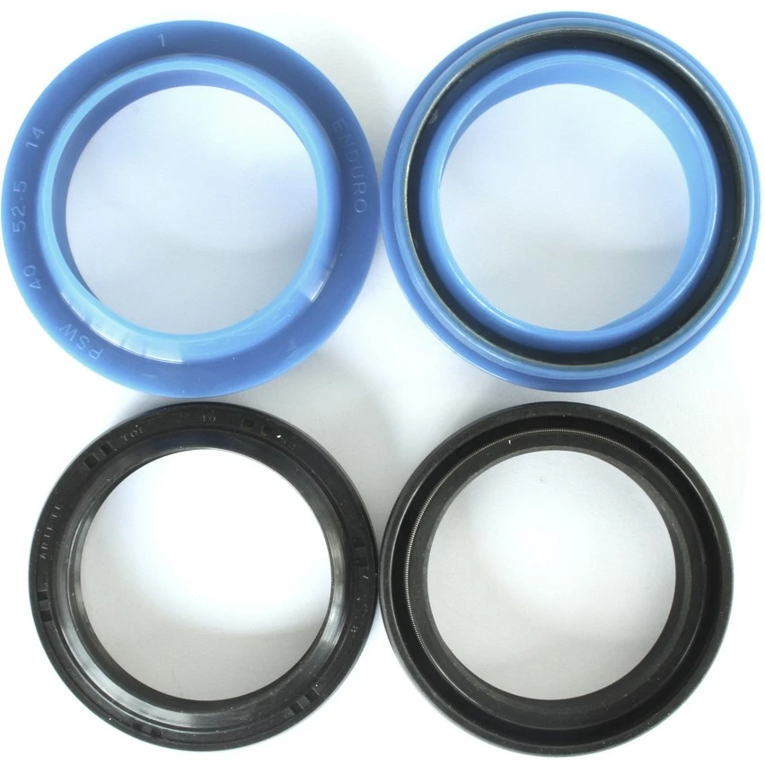 Enduro Bearings invented, designed and formulated polyurethane wipers for the mountain bike fork. Standard designs are plagued by “stiction” contamination and quick degradation of overall performance. Enduro Bearings signature Blue Polyurethane wipers solve these problems, upgrading performance in all of these areas, especially smooth performance over long periods without maintenance. They keep the dirt out and the oil inside. Enduro Bearings wipers seal better, move faster, are slicker, last longer, and run quieter than stock wipers. And now coming with Moly Disulphide lubricated lower oil seals, your forks will move quicker still while never leaking a drop of oil.