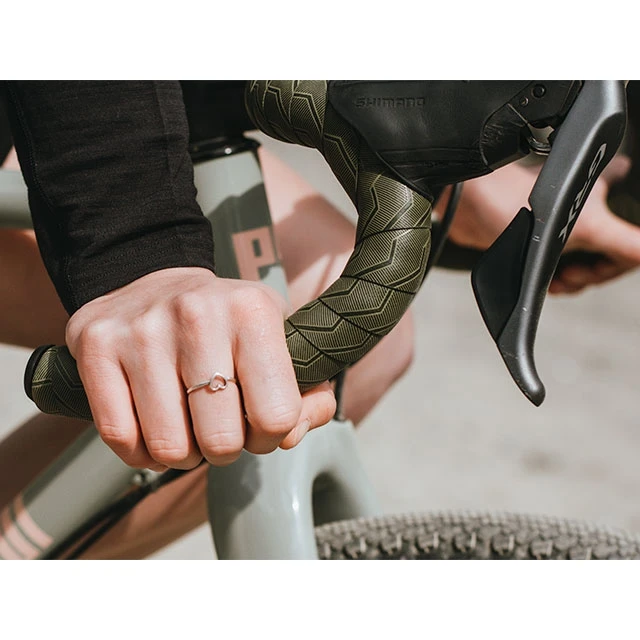 Maximum Gravel- fun without discomfort: Ergon has developed its handlebar tape BT Gravel especially for this purpose. With 3.5 mm thickness and a coarse, block-like surface texture, shocks and vibrations are swallowed, the grip is perfect, the bike always remains under control even on technically demanding terrain. The special bar tape for Gravel- riders reduces pressure on the hands, feels good and always gives a secure grip. Wrapped the BT Gravel can be individually thinner or thicker, with more or less grip – a wrapping aid is incorporated.