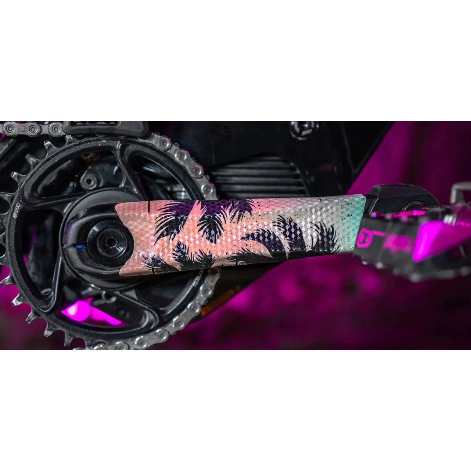 Designed for MTB and EMTBs, the Crank Protection Kit has been developed from the ground up and feature the new proprietary Muc-Off Cube-Tec material, forming a barrier around your crank that’s strong enough to withstand the gnarliest of impacts, whilst being flexible enough to fit pretty much any frame geometry.