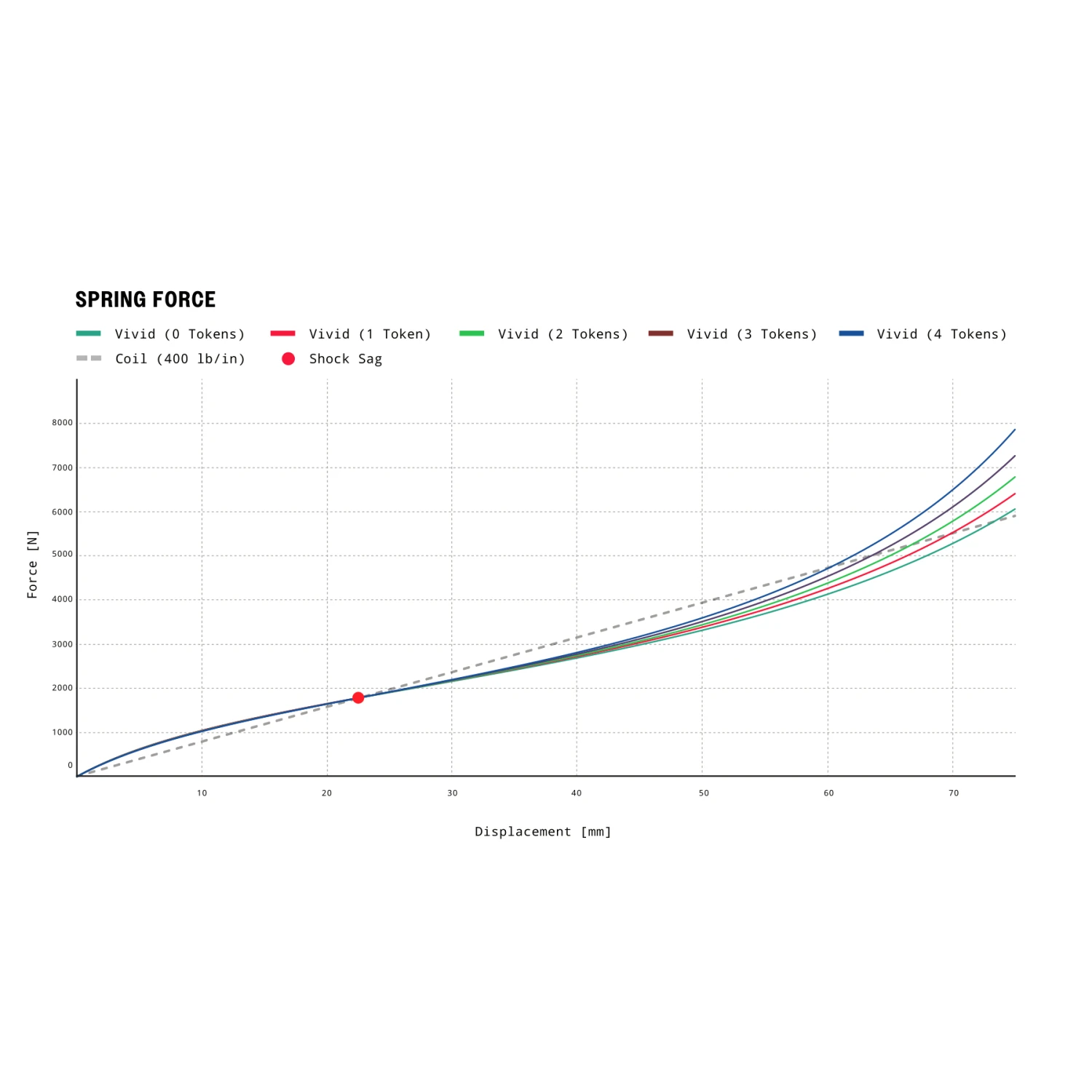 What sets the Vivid apart from a steel spring shock is the highly tunable air spring with DebonAir technology. Its higher volume not only gives a more linear, consistent feel, but also improves sensitivity to small shocks. The air suspension responds sensitively while providing mid-stroke support and comfortable resistance to potential bottoming out at the end of the stroke. Adding Bottomless Tokens can create more Bottom Out resistance, while removing it allows full use of the suspension travel.
