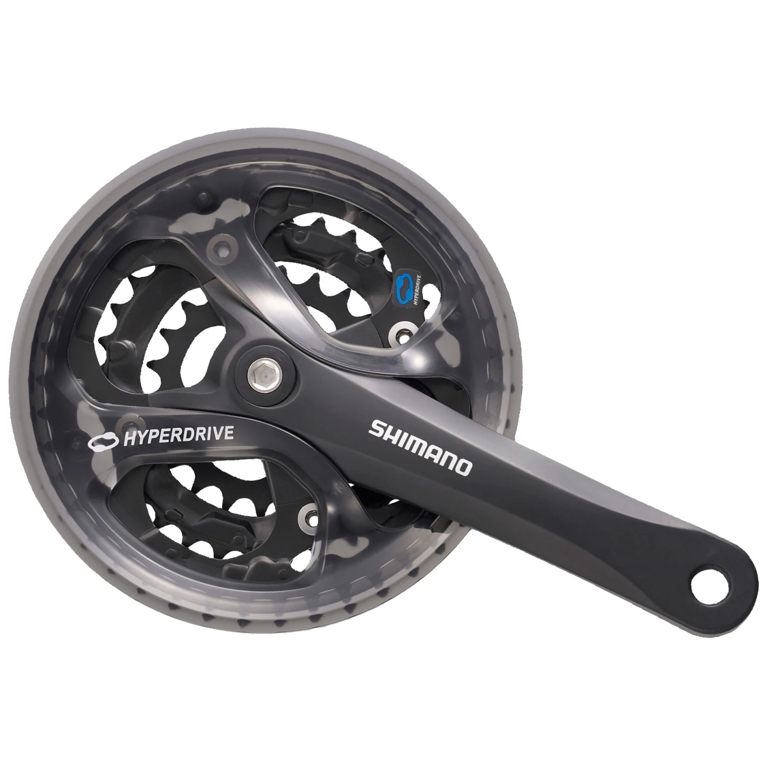 122,5mm or 123mm axle length features a rigid 2-piece construction and Hyperdrive SG-X chainrings. The pre-installed chain guard keeps your legs and pants clean. The crankset is Dual SIS compatible and the steel chainwheels are replaceable.