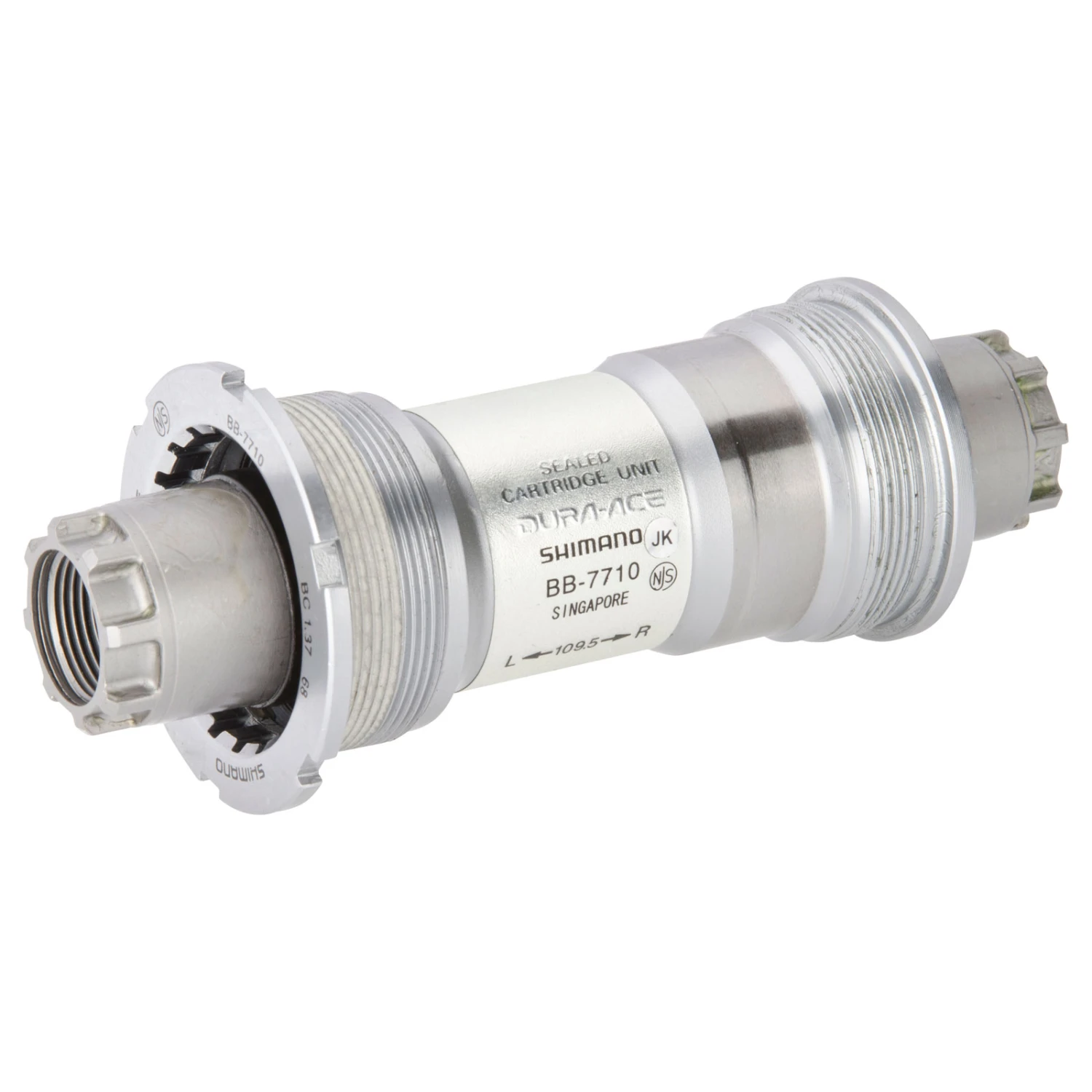 Dura Ace bottom bracket for FC-7710 track cranks. Octalink axle profile with 109,5mm axle length. The big, hollow rolled 22mm-axle of the bottom bracket reduces weight. The Octalink axle profile offers a firm fit. Reduced axle flexure ensured by needle and ball bearings.