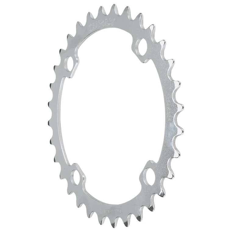 On a drivetrain with a steel chain and steel cogs, why wouldn’t you want to use a steel chainring? Most chainrings on the market are made from aluminum, which is 35% softer than stainless steel. A softer metal means a shorter lifespan. Enter the Surly Stainless Steel chainring, made from 304 grade stainless. You can now have an all-steel drivetrain that will love you long time. Stainless, as it’s name implies, is a rust and corrosion-resistant alloy steel that is known for it’s toughness. Like all things mechanical, it will eventually wear out. When it does, simply flip the chainring around and you’ll get another lifespan out of it.