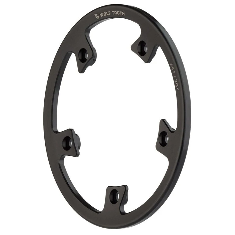 These bashrings provide protection for your Wolf Tooth stainless steel direct mount chainring. Available for 24 to 26 and 28 to 30 teeth.