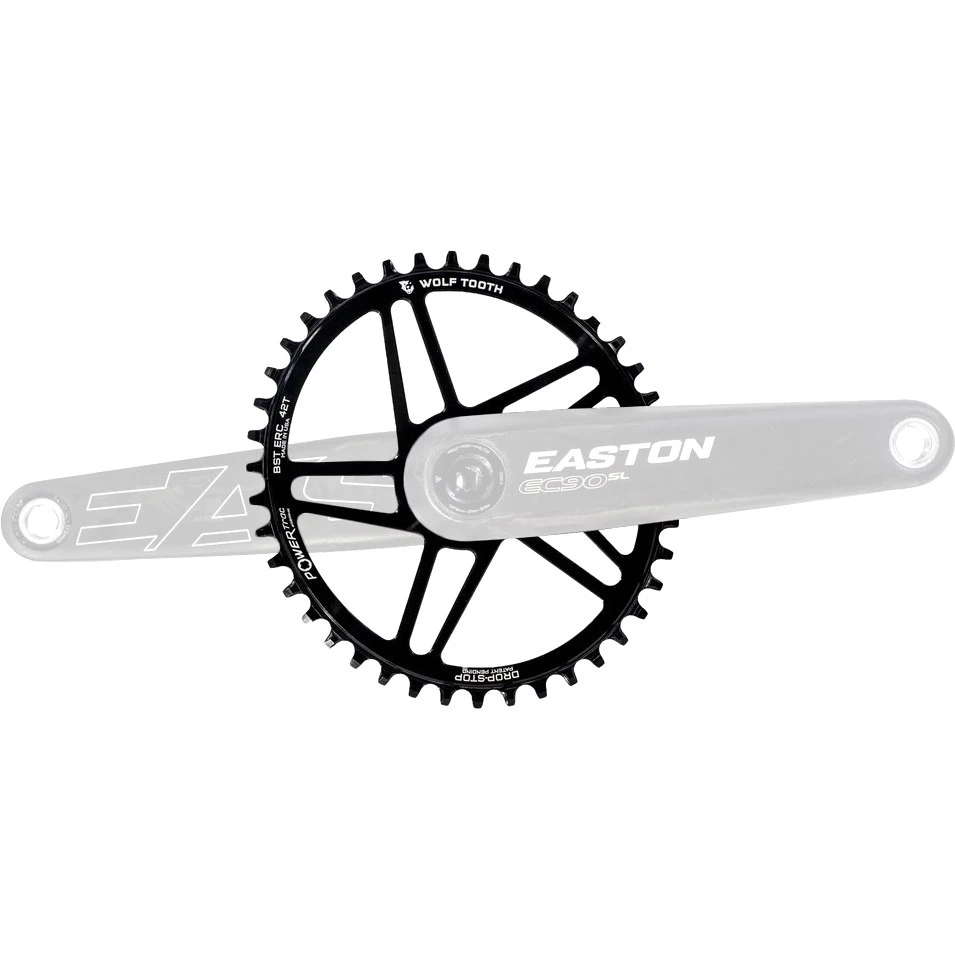 The oval Wolf Tooth Elliptical Direct Mount Flattop chainring for the Easton RCA system not only stands out due to its aesthetic finish and low weight: Thanks to the patented Narrow-Wide-Design the optimal 1-fold chainline is achieved and prevents the chain from falling off the chainring. With this setup, your dream of the perfect drive becomes reality!