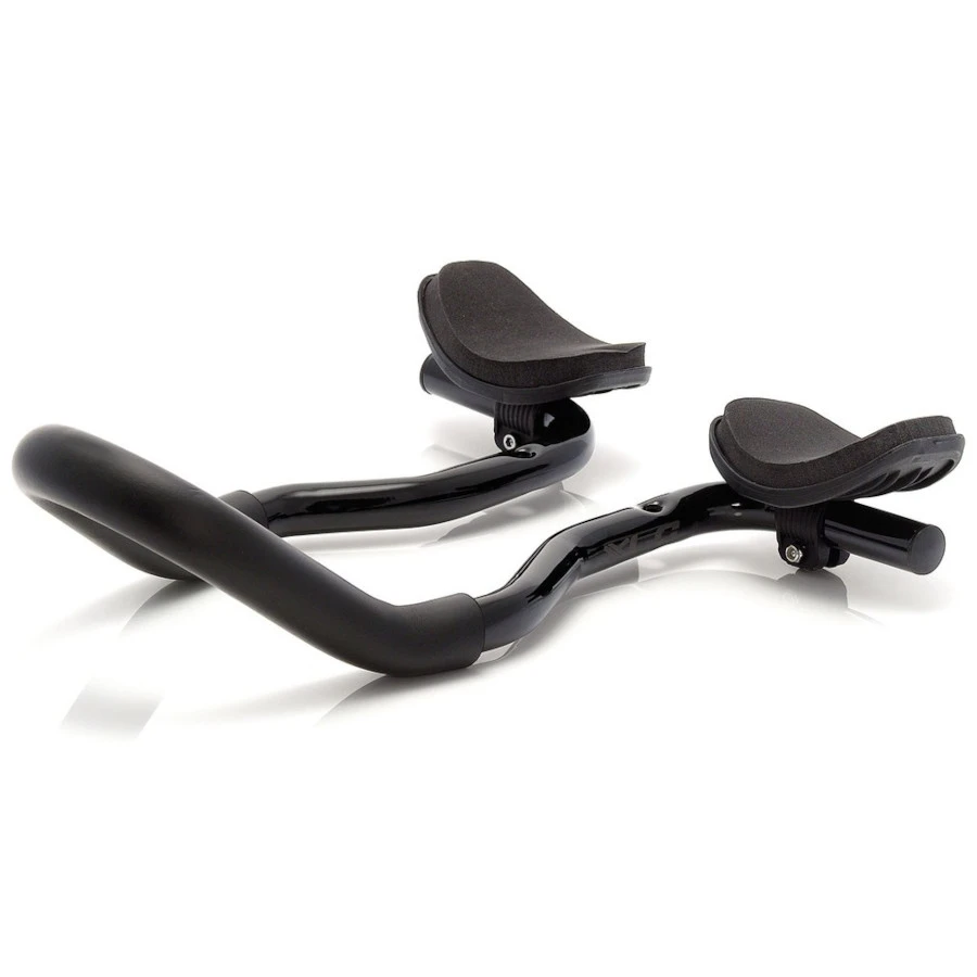 Aerodynamic Tri-Bar aluminium handlebar top with comfortable arm rests and foam pads. The attachment fits handlebars with a clamping diameter of 25.4-31.8mm. The ergonomic shape of the handlebar attachment relieves pressure on the wrists.